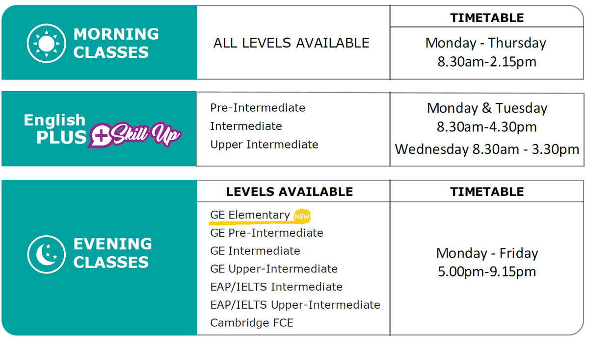 Universal Englishのケンブリッジコースは、毎週、学生は4つの試験セクションのさまざまな部分をカバーし、学生が学習し、誤りを犯し、フィードバックを受け、本格的で機能的で実践的なレッスンに取り組む機会を提供します。